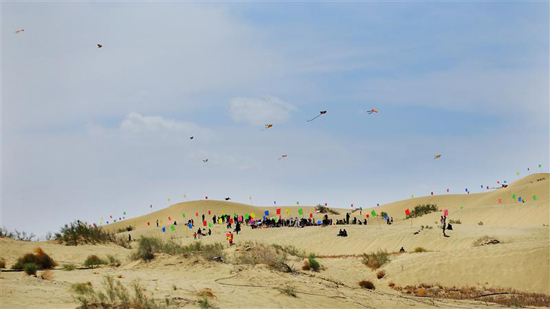 5月2日,“中国西海?放飞追梦”博湖县首届“电信杯”风筝节比赛在艾尔逊乌拉沙漠举行,本次赛事汇聚了来自乌鲁木齐、昌吉、库尔勒等多个地方的200余名风筝爱好者前来体验。大家欢聚一堂,各施绝技。造型独特、工艺精湛的各类风筝扶摇而上,将博湖的万里碧空装点得分外绚烂。