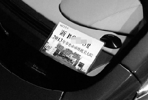 照片上,一辆黑色的阿斯顿·马丁的前挡风玻璃下,插着一张通行证,上面“2013年奉化市市级机关大院”字样清晰可辨。