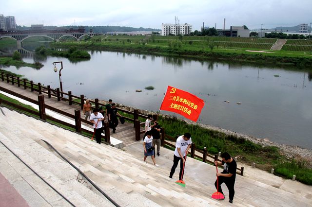 为夺取新冠疫情防控和脱贫奔康双胜利,7月18日,三台县水利局与县政府办、县委宣传部、县人社局、县交通运输局、工业园区、工投公司按照全县统一部署,广泛开展“主题党日社区双报到”文明志愿者服务。大家有效利用周六假日对接潼川镇老西街社区深入开展爱国卫生清洁河湖环境行动,引导社会公众不断巩固全国文明卫生县城创建成果。