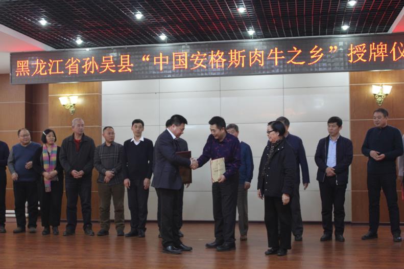 鉴于孙吴县产业主管部门高度重视安格斯肉牛的产业发展,结合全国尚无申报以安格斯肉牛或其它引进国外肉牛优良品种的现状,就孙吴县安格斯肉牛之乡的发展规划和现实的独特性、科学性、规范性,以及安格斯肉牛产业在发展地方经济和带动农民致富过程中的示范带头作用, 2018年2月24日中国特产协会授予黑龙江省孙吴县“中国安格斯肉牛之乡”称号。