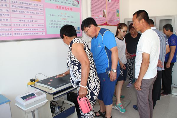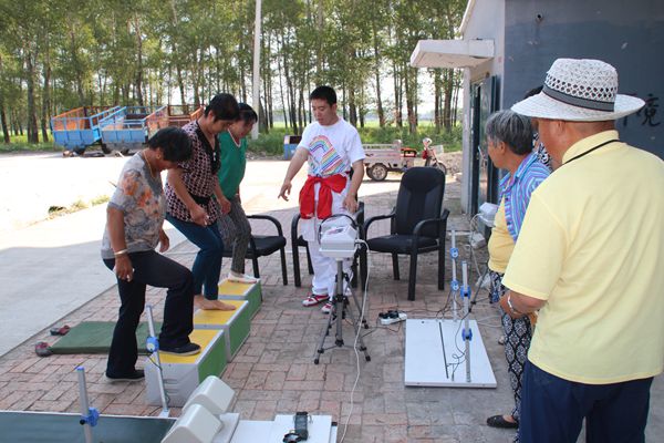 本网讯(通讯员王洪德)自7月初以来,由黑龙江省依安县文化广电体育局组织开展的为农民送健康活动拉开序幕,县体校的教师带着先进设备,深入各乡镇农村社区、村屯,对农民进行身体形态、身体机能、身体素质和心理素质测试,选取身高、体重、体成分、肺活量、心肺功能、台阶试验、骨密度、闭眼单足站立、反应时、仰卧起坐等作为体质测试的指标,当场告知测试结果,并指导农民如何加强锻炼,增强体质,保持良好体能和旺盛的精力,在全面建成小康社会的道路上大踏步向前。图为该县体校教师在依龙镇新民社区为农民测试体质的场面。