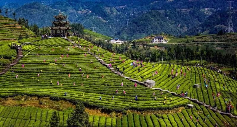 湖北恩施州贫困户在伍家台茶叶基地采摘茶叶