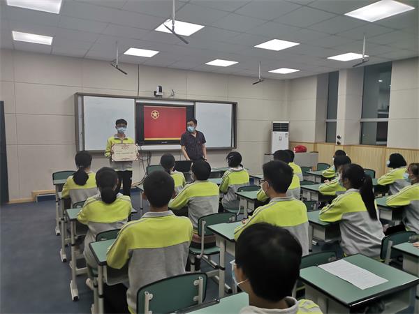 宣誓结束,老团员代表马智俊同学、新团员代表吴佳灿同学先后进行了表态性发言。他们表示,加入中国共产主义青年团,既是一份荣光,更是一种责任,还有更多追求。为祖国增光,为团旗增辉,为学校添彩,是新时代共青团员的孜孜不倦的追求。