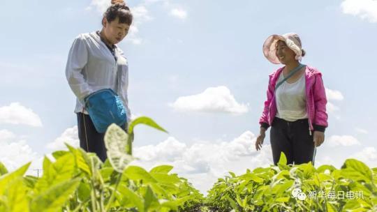 李艳华在农民王淑艳的地里查看大豆长势(2018年6月27日)。新华社记者刘宇轩 摄zK8中国饲料行业信息网-立足饲料,服务畜牧