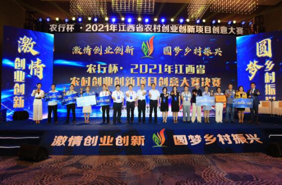 9月17日,由江西省农业农村厅、中国农业银行江西省分行联合举办的农行杯·2021年江西省农村创业创新项目创意大赛决赛在南昌举行。来自全省的10位选手站上了决赛的舞台,经过激烈角逐,初创组《“大艾无疆”小艾草大智慧艾城助力乡村振兴》《红鳅添财—工厂化循环水红泥鳅繁养殖助推乡村振兴》和成长组《民生农业智慧全产业链经营商业模式创新》《抚州市临川龙鑫生态养殖有限公司农业产业园建设》获得参加全国农村创新创业项目创意大赛的资格。省农业农村厅副厅长刘伟,中国农业银行江西省分行副行长李麒麟出席并讲话,共同为获奖选手颁奖。