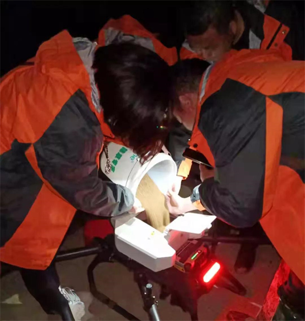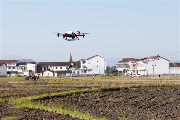 在协税镇244国道边的田野里,久违已久的汉中蓝衬托出鲜艳的党旗红。大型耕整机、施肥播种机、小型旋耕机开足马力,机器轰鸣。素有农业黑科技称号的施肥、播种、喷药一体化无人机舞动翅膀紧急升空。整地、开沟、施肥、播种,大片空茬田完成了小麦抢播。这是南郑区“秋冬播抢种十日大会战”的现场。