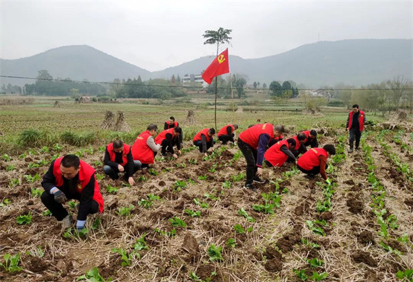 在汉山街道办赵家湾村,身穿红马甲的党员志愿者在田间义务劳动。南郑区围绕“我为群众办实事”开展结对联建党员志愿活动,把组织生活会、主题党日活动开在村上、开在田间。组织党员干部与缺劳户结对帮劳,解决群众秋冬播抢种的实际困难。进一步强化党建引领、凝聚党员力量。