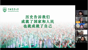我校青马协会会长杨钰在会上做“传承农大红色基因,彰显农大青年本色”主题发言。她从追寻农大“延河魂”、担当青年“新使命”两个方面,交流了近年及抗疫期间我校青年学子的新作为。她感慨道,农大人的红色基因凝结在“曲周精神”里,镌刻在“解民生之多艰”的校训上,始终与祖国、与人民同呼吸共命运。身为学生党员更应带领和团结身边的农大学子,成为一个“强农兴农、知农爱农”的时代新人,为中国的农业现代化奉献自己青春和智慧。会后,杨钰还参与了此次活动的主题短视频录制,以诗朗诵的形式面向高校学子发起“学习回信精神,传承红色基因,与延河高校一起”的号召。
