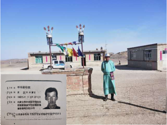 我叫呼毕斯哈图,性别:男,民族:蒙古族,现年53岁,身份证号码:152724196711271511,系内蒙古自治区鄂尔多斯市鄂托克前旗敖勒召其镇查干巴拉嘎苏嘎查敖格特尔社牧民。