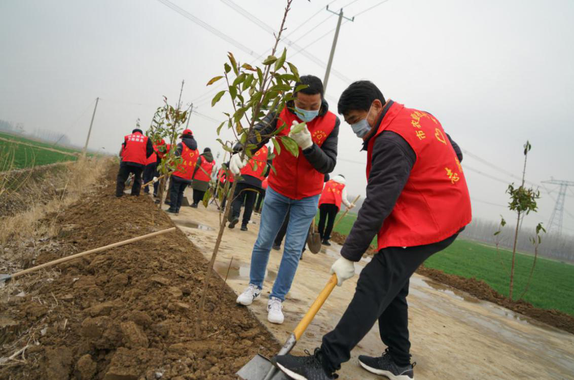 下午,全体党员赴结对帮扶村赣榆区班庄镇朱范村进行义务植树活动。植树现场,小雨淅沥,但仍挡不住大家的植树热情。党员领导干部带头挥锹,挖坑培土,栽下第一排小树苗。其他党员也不甘落后,迅速投入种植作业,大家齐心协力,一起挥锹铲土,认真细致地栽种好每一株树苗,好一片繁忙景象。新种下的树苗在雨中挺立,彰显勃勃的生机与无限的希望。