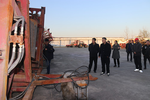白马湖分公司一行先后参观了云台分公司自行研发的宽幅精量轻简播种机、宽幅圆茼式镇压器和锥形镇压器,骆元详尽介绍了各式农机具的工作原理、性能效率,查看了四大队、五大队、八大队部分田块小麦播后出苗情况。
